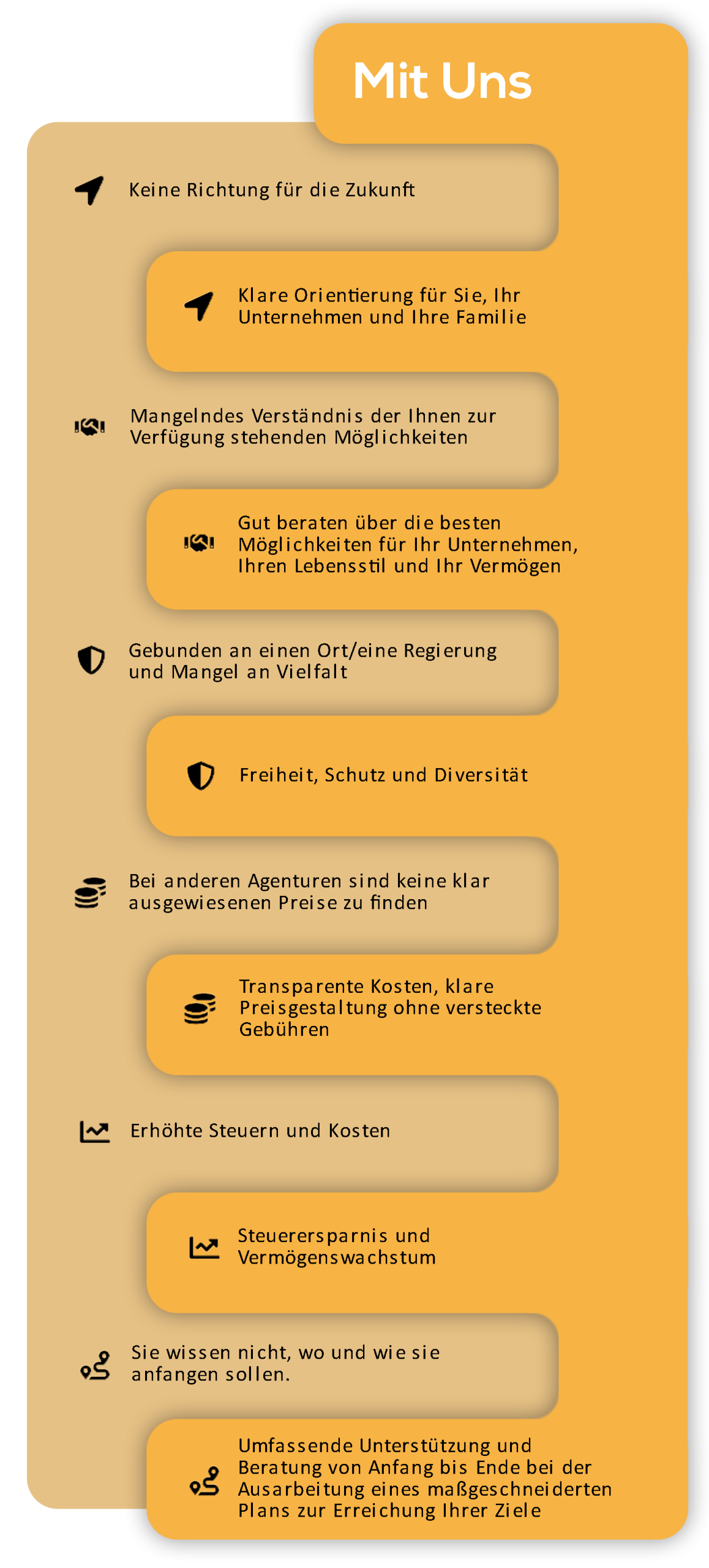 Wir kümmern uns um alle Ihre Auswanderungsvorbereitungen – ob es um die Gründung Ihres Unternehmens, die Eröffnung eines Bankkontos oder die Beantragung Ihres Visums geht. Lehnen Sie sich zurück und freuen Sie sich auf Ihr neues Leben in Dubai.